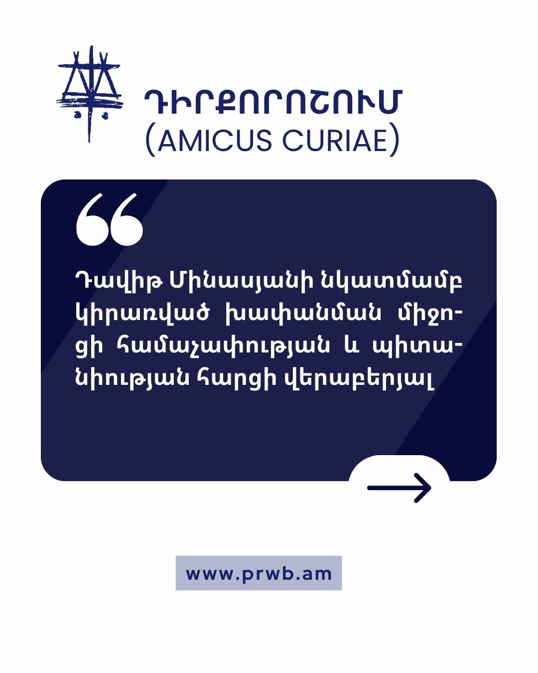 ԴԻՐՔՈՐՈՇՈՒՄ Դավիթ Մինասյանի նկատմամբ կիրառված խափանման միջոցի համաչափության և պիտանիության հարցի վերաբերյալ