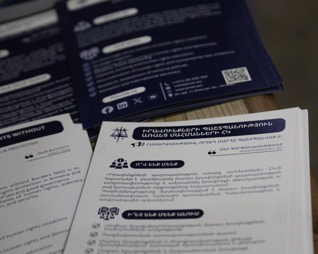 Իրավունքների պաշտպանություն առանց սահմանների ՀԿ-ի թիմը նոյեմբերի 28–29-ը մասնակցեց Երևանում անցկացված Միջազգային իրավունքի փառատոնին, որը կազմակերպել էր Հայաստանի միջազգային իրավունքի միություն ՀԿ-ն։ Փառատոնի ընթացքում ԻՊԱՍ-ի ծրագրերի համակարգող Աննա Մելիքյանն այցելուներին ու մասնակիցներին ներկայացրեց ԻՊԱՍ-ի գործունեությունը և վարեց պանելային քննարկում՝ «Արդյո՞ք արժե մասնագիտանալ միջազգային իրավունքում» թեմայով։ Իրավական հարցերով փորձագետ Հասմիկ Հարությունյանը ելույթ ունեցավ «Ջատագովությունը միջազգային իրավունքում» […]
