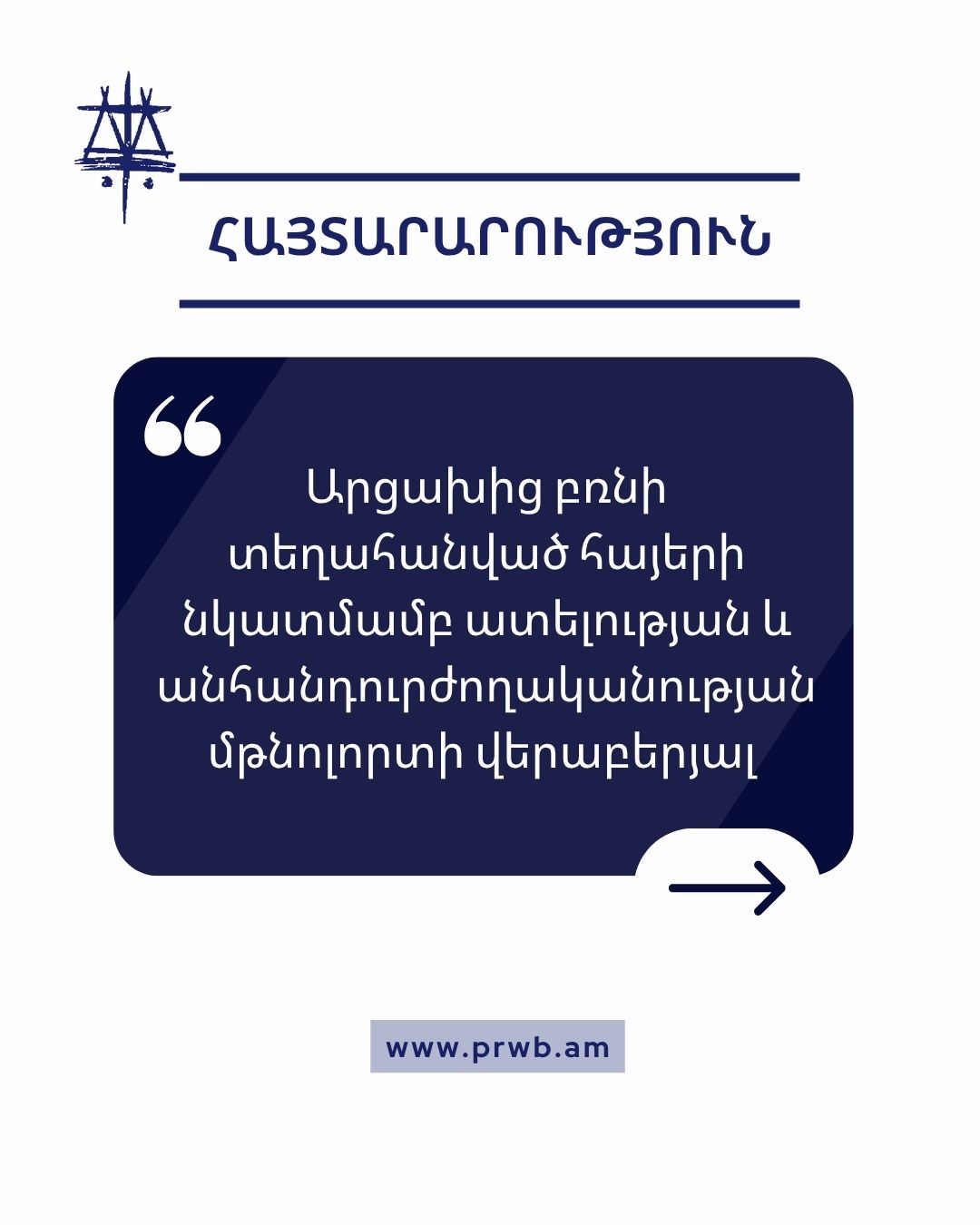 Մենք՝ ներքոստորագրյալ հասարակական կազմակերպություններս, անընդունելի ենք համարում եւ դատապարտում ենք 2026թ․ մարտի 22-ին ՀՀ վարչապետ Նիկոլ Փաշինյանի և Արցախից բռնի տեղահանված կնոջ միջև խոսակցության ընթացքում վարչապետի վարքագիծն ու խոսույթը, ինչը ոչ միայն հանրային պաշտոն զբաղեցնող անձի վարքագծի կանոնների խախտում է, այլև Արցախից բռնի տեղահանված հայ բնակչության նկատմամբ անհանդուրժողական և ատելության խոսք։