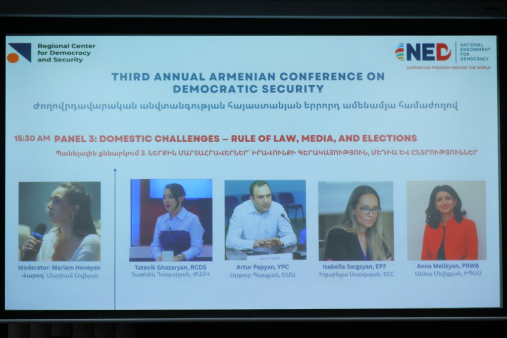 The panel also addressed issues related to the transparency of political party financing, information attacks against Armenia and the infrastructure supporting them.